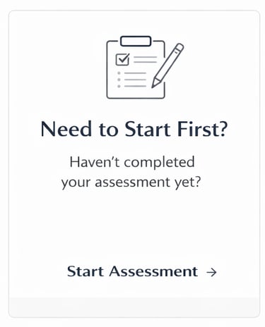 If you have not completed your assessment yet, begin there so we can guide you properly.